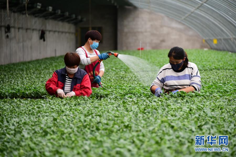 河北曲周縣一家育苗產業(yè)基地的工人在育苗溫棚內工作(5月4日攝)。曲周縣積極拓寬產業(yè)扶貧渠道,發(fā)揮當地產業(yè)優(yōu)勢,統(tǒng)籌協調貧困戶利用扶貧資金入股現代設施農業(yè)基地,帶動群眾脫貧增收。新華社記者 朱旭東 攝