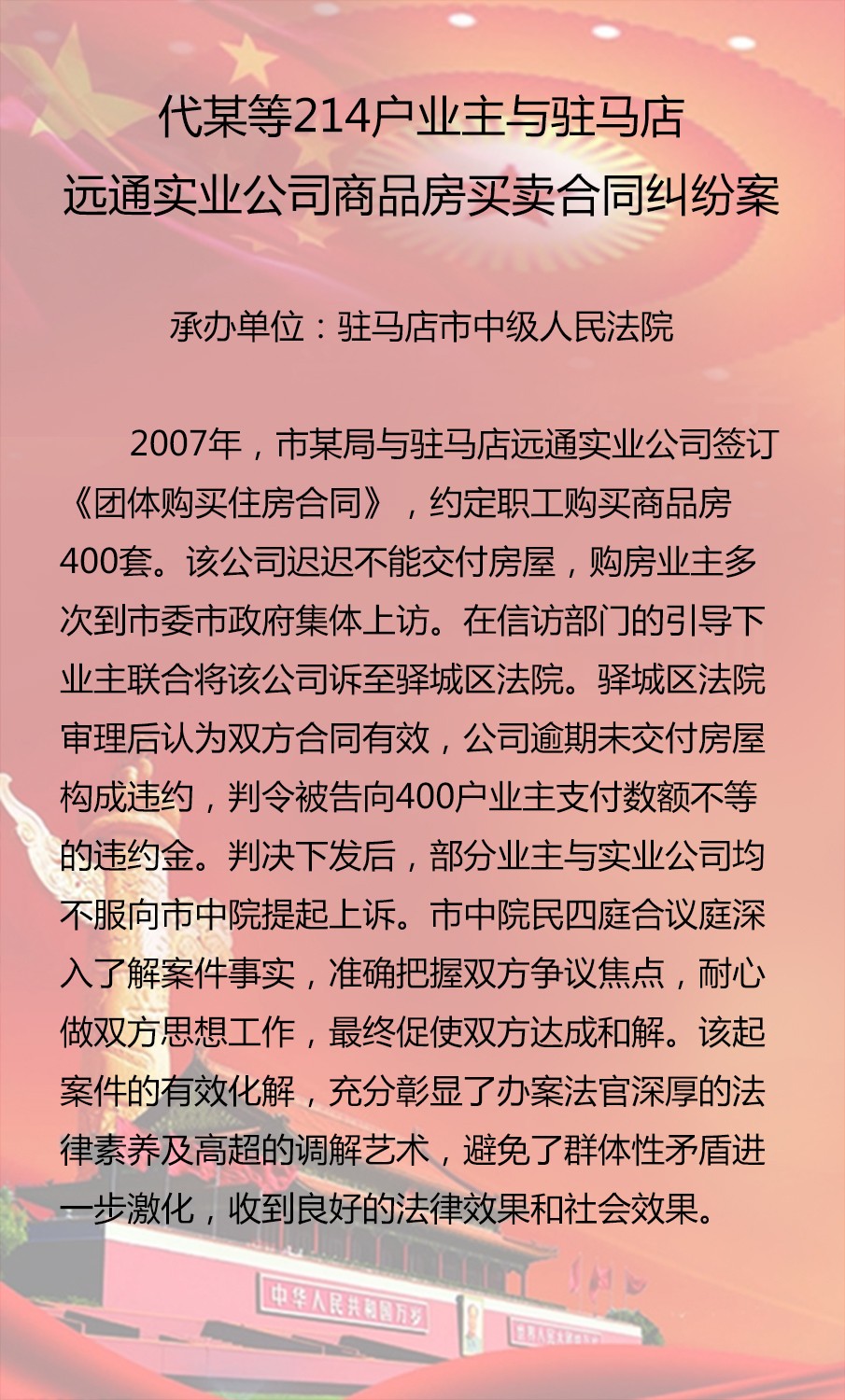 代某等214戶業(yè)主與駐馬店遠(yuǎn)通實(shí)業(yè)公司 商品房買賣合同糾紛案