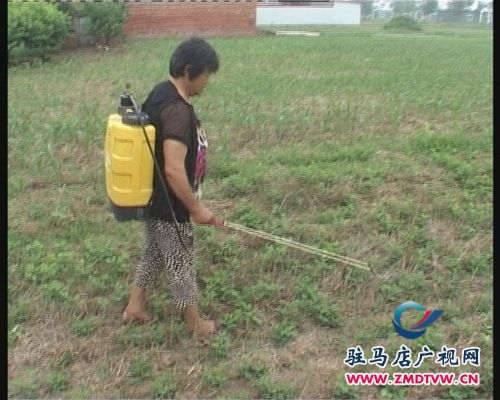 在另一處農(nóng)田里,村民程金枝正忙著給地里的花生打除草劑,確保花生的養(yǎng)分充足。
