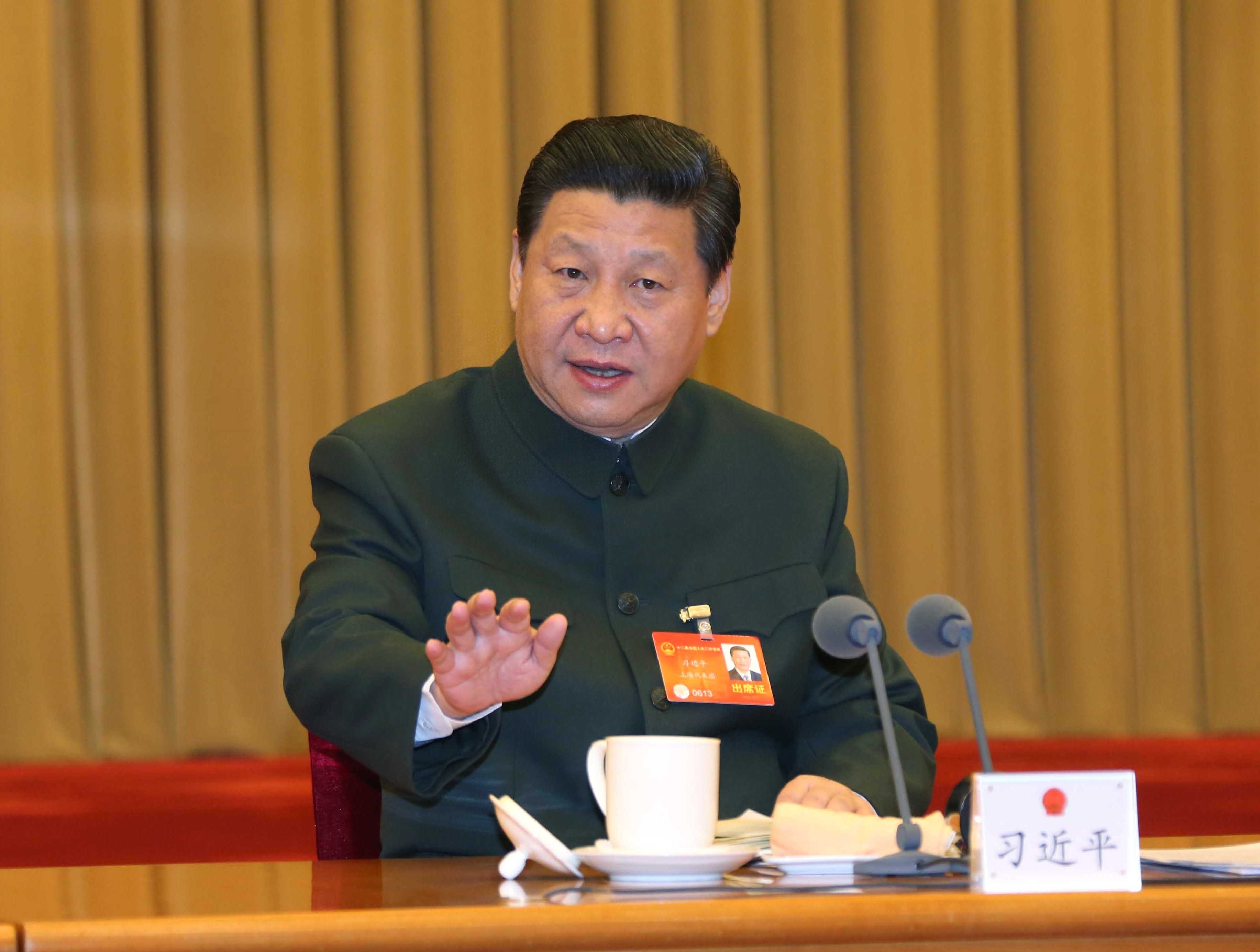 (2014年3月11日,習(xí)近平出席十二屆全國人大二次會(huì)議解放軍代表團(tuán)全體會(huì)議)
