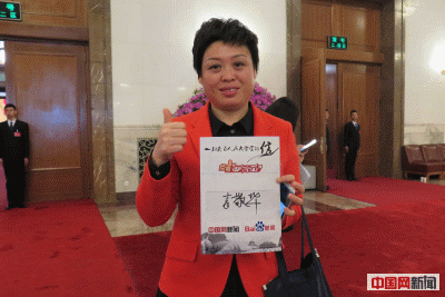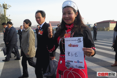 2015年3月12日,北京人民大會堂外,全國人大代表、云南省臨滄市滄源佤族自治縣國門小學(xué)數(shù)學(xué)教師鮑紅藝點贊“四個全面”。