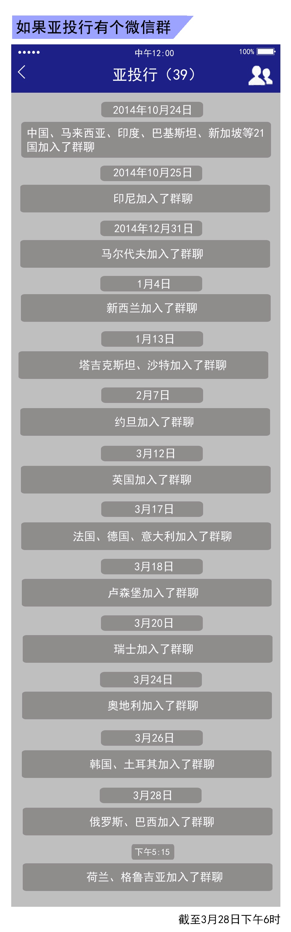 然而,美國(guó)的干預(yù),最終沒(méi)能穩(wěn)固住西方陣營(yíng),相反看著一個(gè)又一個(gè)盟友成了亞投行的股東。英法德韓澳,這些過(guò)往被看成是美國(guó)“小弟”的國(guó)家,這次真是鐵了心要跟著中國(guó)混。截止到今天(2015年3月29日),亞投行的創(chuàng)始成員國(guó)已增加到了42個(gè)。
