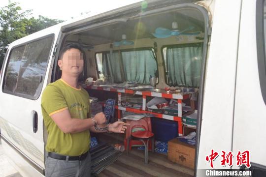 犯罪嫌疑人蔡某帥指認(rèn)涉案改裝面包車(chē)。警方供圖