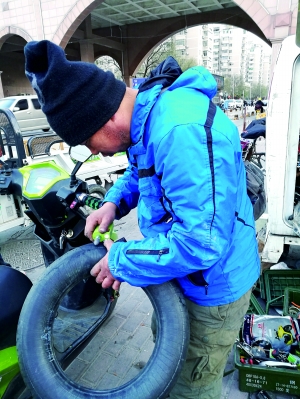 王師傅告訴北京晨報記者,他是河北人,今年是他跟自行車打交道的第14年,“最早是在2003年,騎自行車的人比現(xiàn)在多多了,剛接觸這個行當還是因為在路邊賣車,后來覺得自己對自行車熟悉了,能稍稍摸到點門路,就開始琢磨幫人修車,最開始還修壞過幾輛”。2008年,王師傅感覺到自行車逐漸變少,維修電動車開始為他帶來不少生意,“自行車確實變少了,但老百姓出行方式也沒完全被汽車替代,電動車多了,所以修車的需求依然不少”。