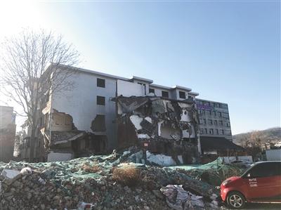 新京報(bào)記者近日在東大街看到,不少拆了一半的房屋臨街而立,樓房的水泥鋼筋裸露在外,聳立在半空中。樓前的電線雜亂地交織在一起,屋后垃圾成堆,一副破敗的景象。