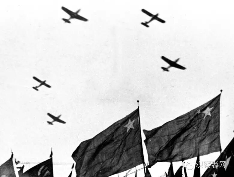 1949年開(kāi)國(guó)大典閱兵,定在10月1日下午15時(shí)開(kāi)始,受閱飛機(jī)16時(shí)升空。