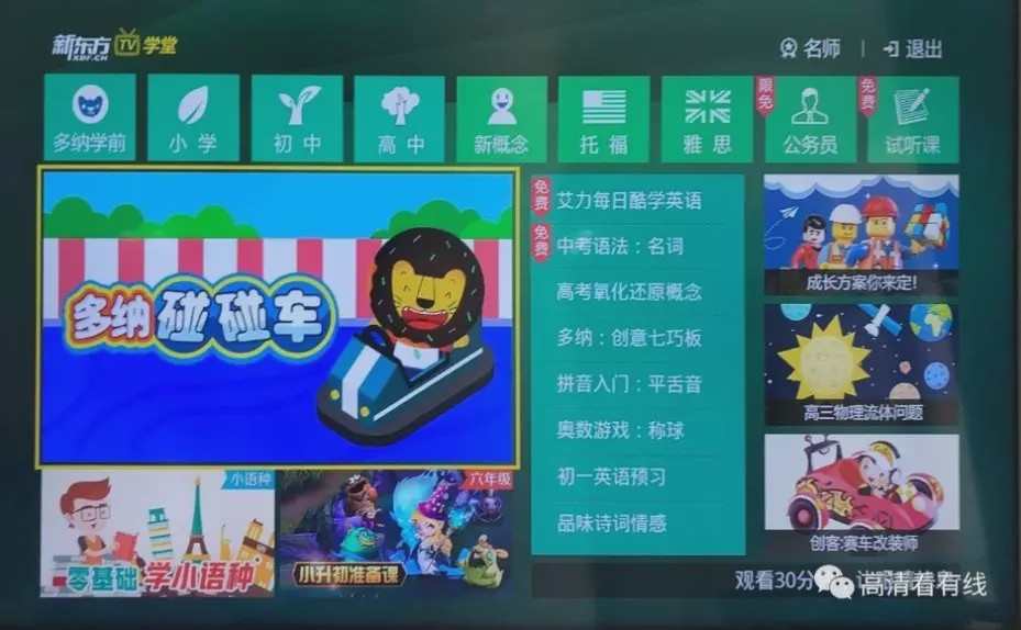 除了本地教學(xué)視頻之外,河南有線還積極整合國內(nèi)外優(yōu)質(zhì)教育資源,包括新東方、學(xué)而思、華中師大、洪恩等內(nèi)容,上線文廣學(xué)堂板塊,助力學(xué)子夢想。