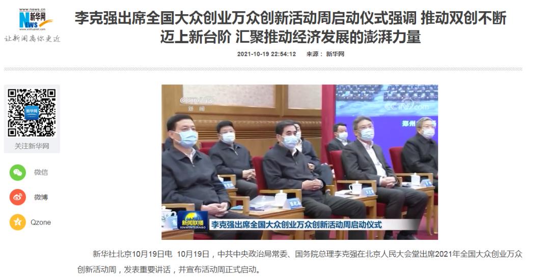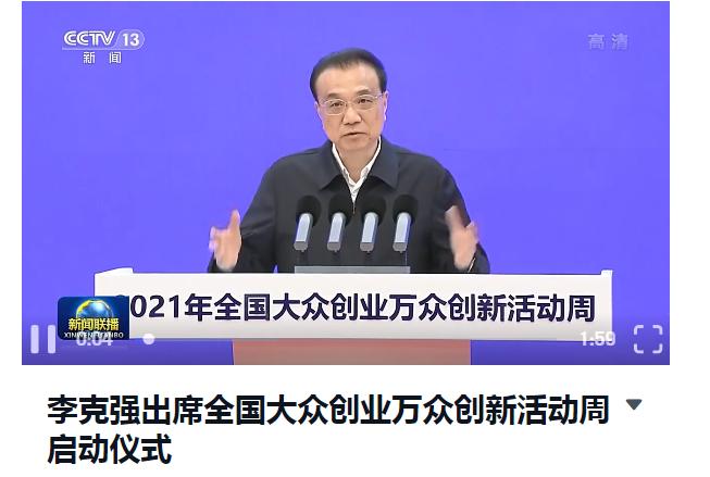 央視《新聞聯(lián)播》欄目以《李克強(qiáng)出席全國大眾創(chuàng)業(yè)萬眾創(chuàng)新活動(dòng)周啟動(dòng)儀式》為標(biāo)題報(bào)道。