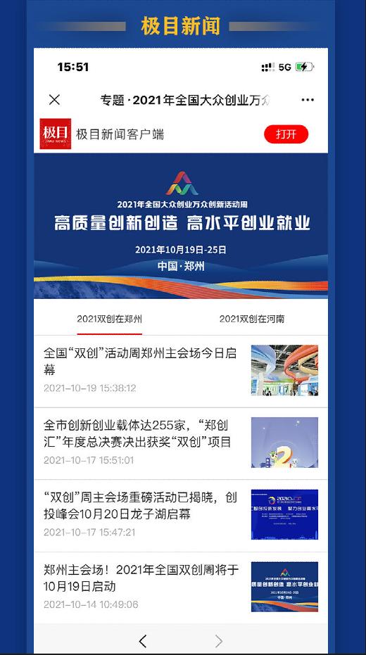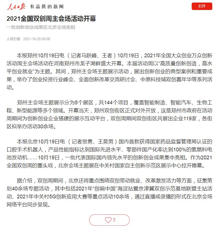 10月19日,2021年全國大眾創(chuàng)業(yè)萬眾創(chuàng)新活動(dòng)周主會(huì)場活動(dòng)在鄭州開幕,全國各大媒體重磅報(bào)道。