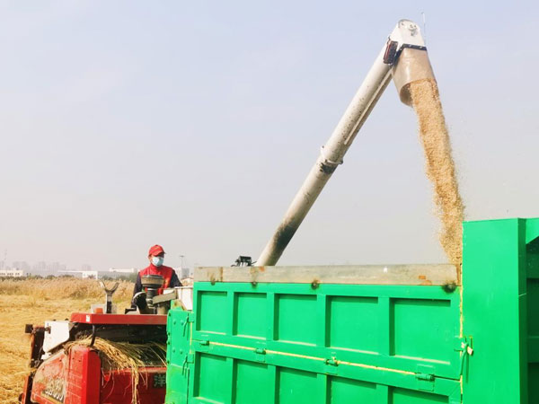 山東省德州市農(nóng)民喜迎秋糧豐收。(山東省樂(lè)陵市委宣傳部供圖)
