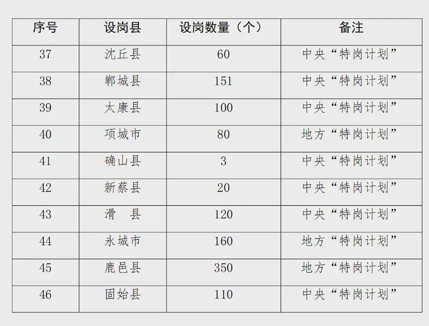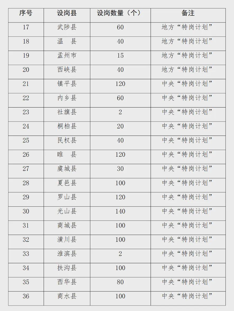15.請各地緊密結(jié)合鄉(xiāng)村學(xué)校實(shí)際需求,嚴(yán)格按照2024年“特崗計(jì)劃”實(shí)施政策精神,抓緊擬定分學(xué)段、分學(xué)科招聘崗位,于6月14日前提交至河南省特崗教師招聘管理系統(tǒng)。