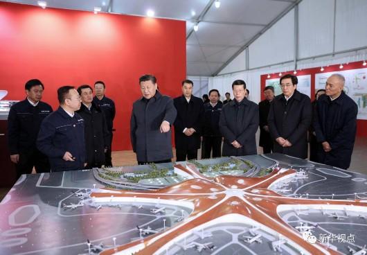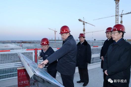 北京新機場建設(shè)正處在關(guān)鍵階段。23日下午,習(xí)近平來到新機場建設(shè)工地考察。