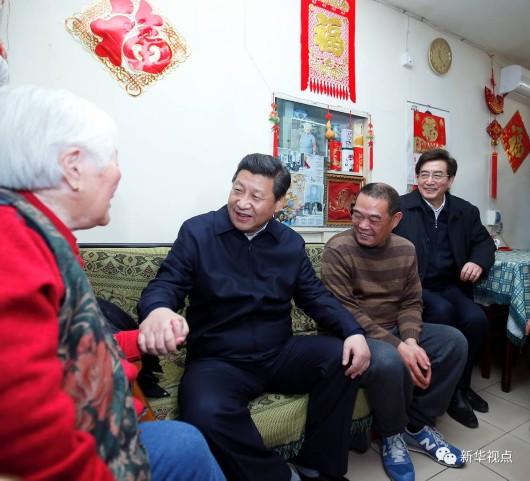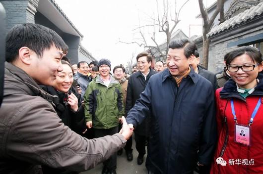 這是2014年2月,習(xí)近平在北京考察工作,走進(jìn)雨兒胡同一個大雜院的場景。