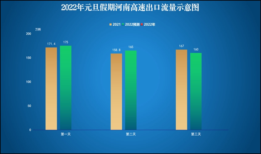 綜合假期天氣、收費(fèi)政策、疫情防控等因素,預(yù)計(jì)今年元旦假期,我省高速公路出口總流量將保持小幅穩(wěn)定增長(zhǎng),假期總流量將突破500萬(wàn)輛,日均將達(dá)到約167萬(wàn)輛,為日常流量的1.05倍。