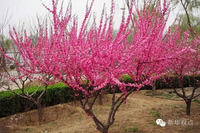 碧桃:樹冠寬廣而平展,花型豐腴,色彩鮮艷,在園林綠化中被廣泛用于湖濱、水畔、道路兩側(cè)和公園內(nèi)。總書記在北京參加義務(wù)植樹時(shí)種植。