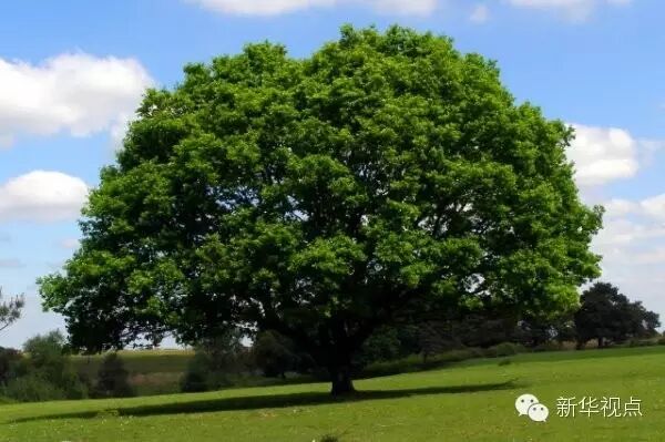 橡樹;生命期長,適應(yīng)性強(qiáng),枝干粗壯高大,樹冠寬大繁茂,在西方常常被認(rèn)為是長壽和強(qiáng)壯的象征??倳浽L問英國時(shí)種植。