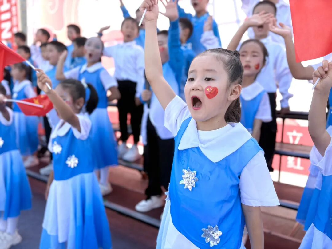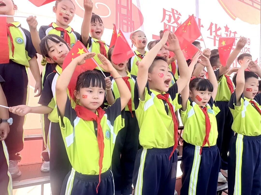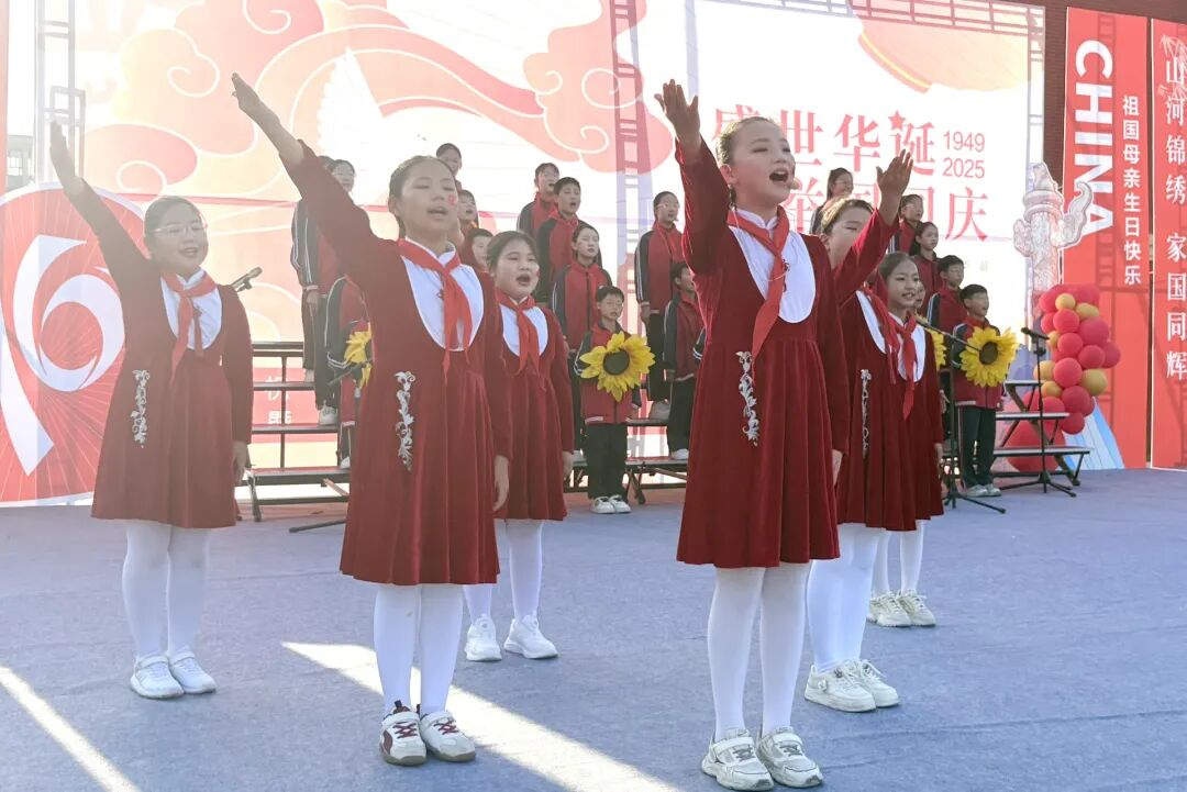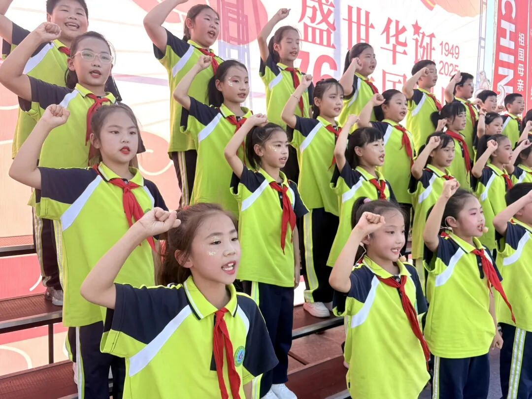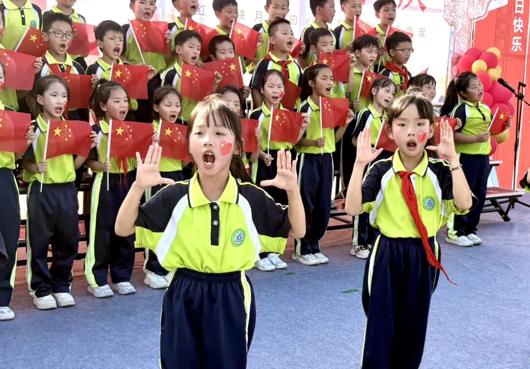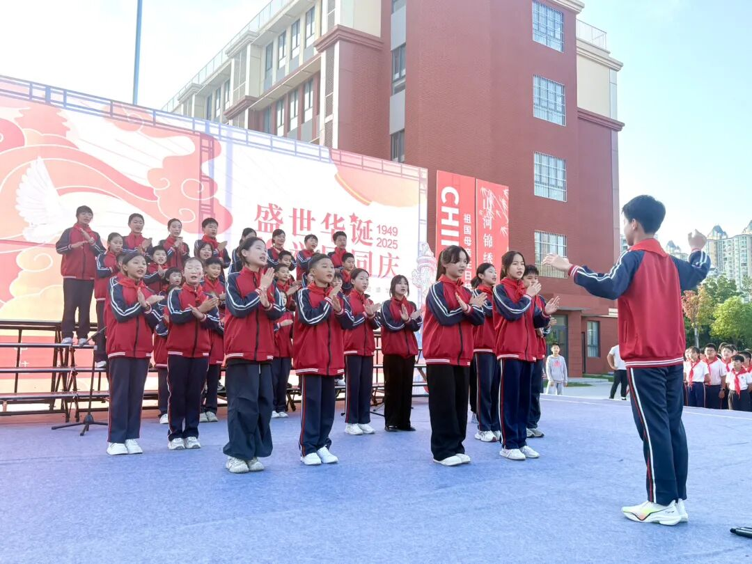 孩子們的歌聲或許稚嫩,卻充滿力量;動作或許簡單,卻飽含真誠。他們揮舞著小紅旗,臉上洋溢著自豪的笑容,將對祖國的祝福融入每一個音符、每一個眼神。臺下師生跟著旋律輕輕哼唱,掌聲與歌聲交織,匯成一片愛國的海洋。