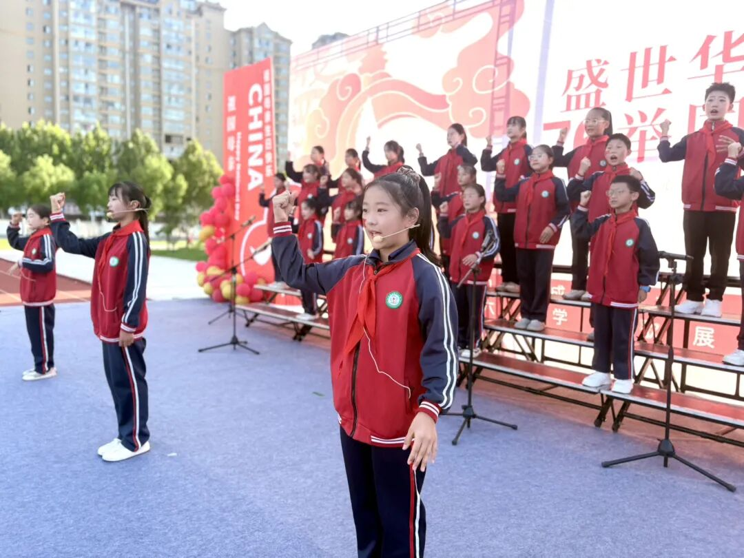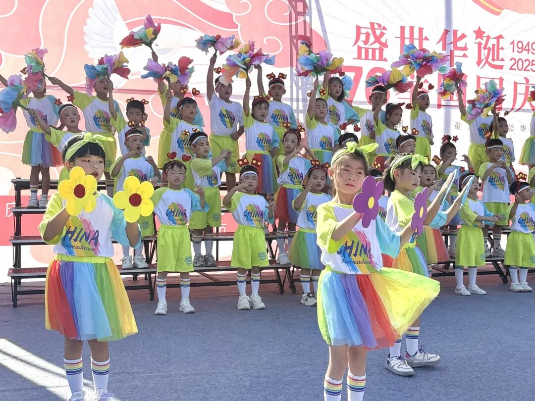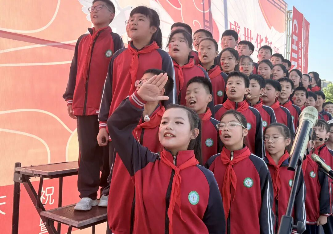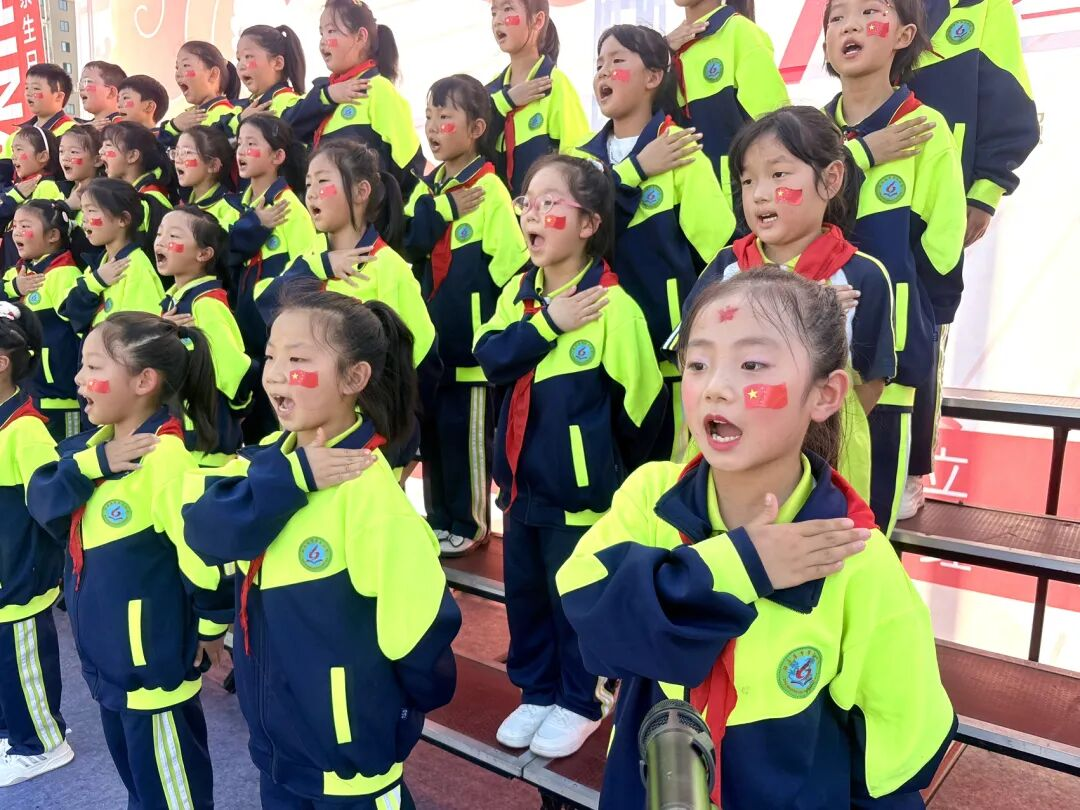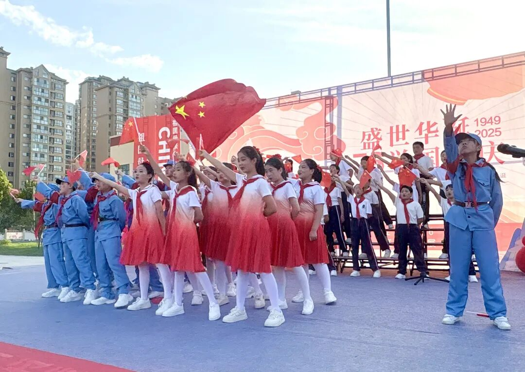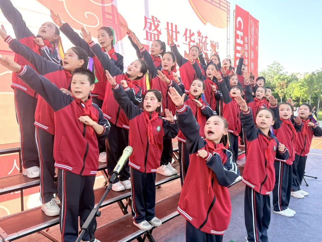 孩子們的歌聲或許稚嫩,卻充滿力量;動作或許簡單,卻飽含真誠。他們揮舞著小紅旗,臉上洋溢著自豪的笑容,將對祖國的祝福融入每一個音符、每一個眼神。臺下師生跟著旋律輕輕哼唱,掌聲與歌聲交織,匯成一片愛國的海洋。