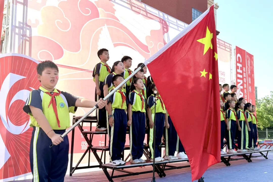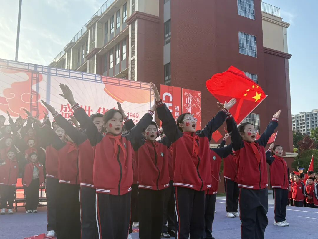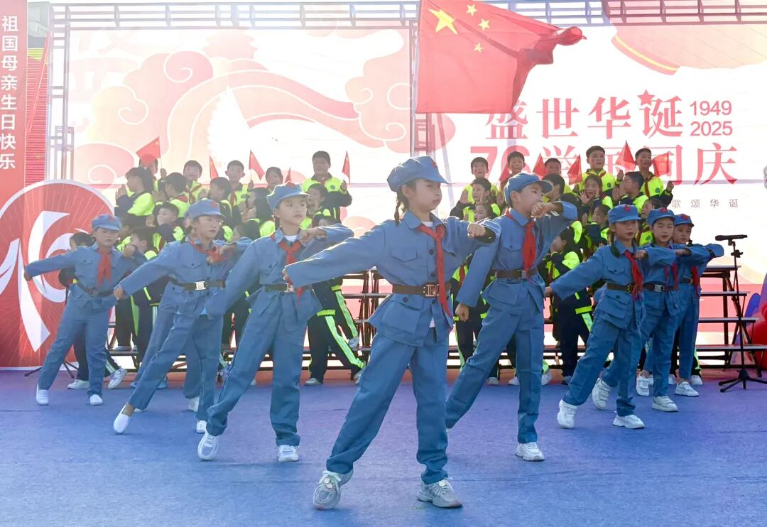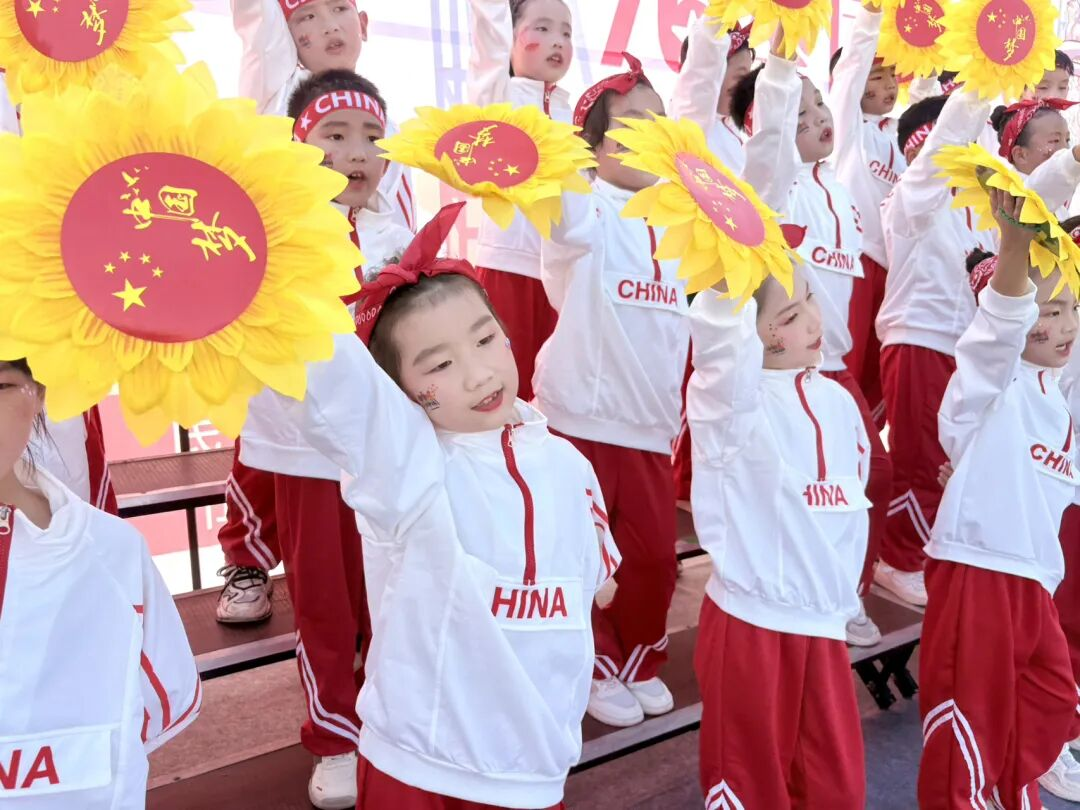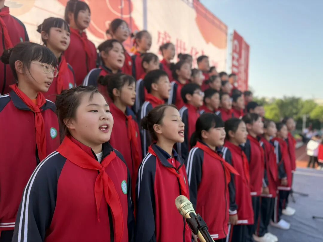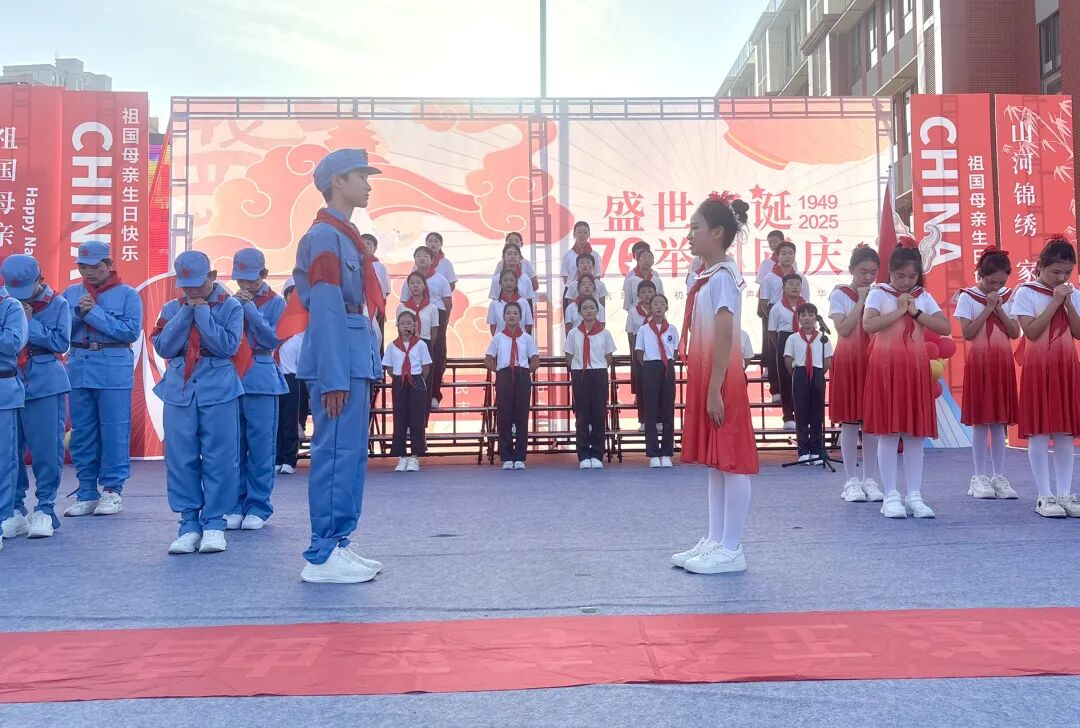 孩子們的歌聲或許稚嫩,卻充滿力量;動作或許簡單,卻飽含真誠。他們揮舞著小紅旗,臉上洋溢著自豪的笑容,將對祖國的祝福融入每一個音符、每一個眼神。臺下師生跟著旋律輕輕哼唱,掌聲與歌聲交織,匯成一片愛國的海洋。
