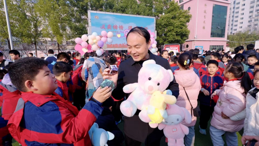 活動(dòng)現(xiàn)場猶如熱鬧的小集市,迷你商鋪的攤位上商品琳瑯滿目,攤位前人頭攢動(dòng)。學(xué)生們紛紛化身小小攤主、“帶貨”達(dá)人、理貨能手,各顯其能。“小小售賣員”的吆喝聲此起彼伏:“快來買呦,我們這里的物品又多又好!”“謝謝你獻(xiàn)出的一份愛心!”“好玩的毛絨玩具,2塊錢一個(gè),不要錯(cuò)過啦!”他們用稚嫩的話語為愛心公益盡心盡力,臉上洋溢著幸福的笑容。