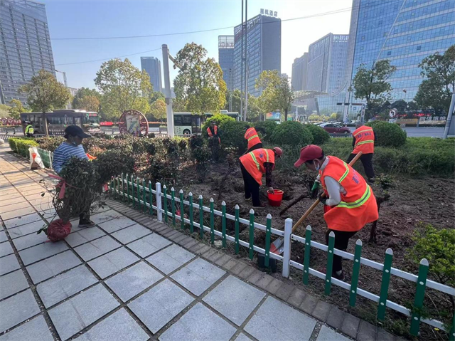 補植過程中,工作人員嚴格按照種植規(guī)范操作,重點抓好栽前修剪、種植穴開挖、原有樹樁清除、種植土更換、殺菌消毒、定根水澆灌、支撐加固等關鍵技術環(huán)節(jié),確保補栽苗木成活率。