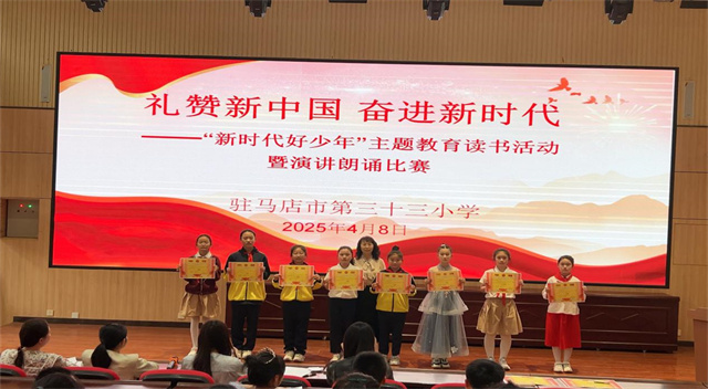 為深化愛國主義教育,引導(dǎo)學(xué)生樹立愛黨愛國情懷,增強(qiáng)民族自豪感,展現(xiàn)新時代少年兒童的精神風(fēng)貌,提升學(xué)生的語言表達(dá)能力和綜合素質(zhì)。4月8日,駐馬店市第三十三小學(xué)在學(xué)校報告廳開展了“新時代好少年”主題教育讀書活動暨演講朗誦比賽活動。