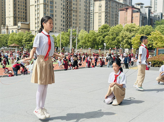 走進(jìn)金雀路小學(xué)大課間的操場,你會瞬間被花樣跳繩活動(dòng)的場景所吸引,孩子們輕快地舞動(dòng)著手中的跳繩,動(dòng)作輕盈而嫻熟,機(jī)智地跳躍、跑動(dòng),笑意寫在臉上、快樂洋溢心中,跳繩活動(dòng)儼然成為學(xué)校的一道風(fēng)景。