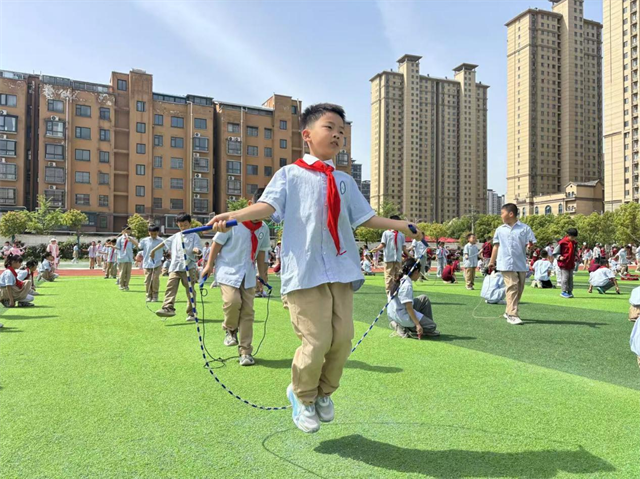 為落實(shí)立德樹人的根本任務(wù),實(shí)施“五育并舉”,全面落實(shí)“雙減”政策,促進(jìn)學(xué)生身心健康發(fā)展,駐馬店經(jīng)濟(jì)開發(fā)區(qū)金雀路小學(xué)積極探索獨(dú)具特色的課間活動(dòng)形式,在大課間活動(dòng)中融入花樣跳繩項(xiàng)目,已成為課間一道靚麗的風(fēng)景線。
