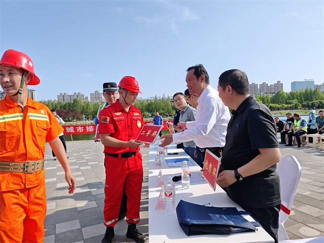 比武現(xiàn)場(chǎng)開發(fā)區(qū)搶險(xiǎn)隊(duì)沉著應(yīng)戰(zhàn),隊(duì)員們將日常訓(xùn)練成果轉(zhuǎn)化為實(shí)戰(zhàn)效能,以規(guī)范的流程、過硬的技術(shù)和默契的協(xié)作,贏得現(xiàn)場(chǎng)評(píng)委的高度認(rèn)可,最終脫穎而出,榮獲全市第二名的優(yōu)異成績。
