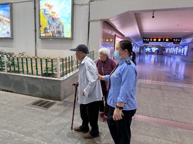 傾情暖心服務(wù),全過程紓困。充分發(fā)揮“驛路溫馨”服務(wù)站作用,安排專人解答旅客問詢、提供輪椅、便民物品和信息查詢服務(wù),同時(shí)通過對(duì)候車區(qū)洗手池配備熱水寶,安裝免費(fèi)充電處等保證便捷出行。適時(shí)組建黨團(tuán)突擊隊(duì),分布在售票廳、進(jìn)站口、電梯口、站臺(tái)等關(guān)鍵崗位,為殘障旅客提供進(jìn)站迎接、候車照顧、進(jìn)站護(hù)送、上車交接的一條龍服務(wù),做好殘障旅客旅途的“貼心人”。