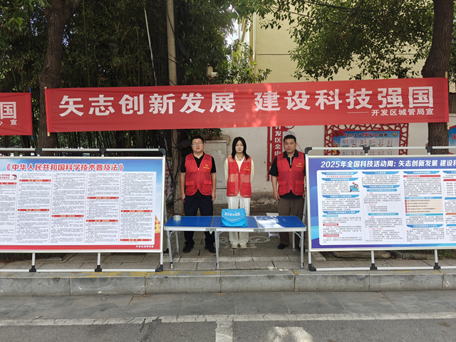 2025年5月24—31日是第二十五個(gè)全國(guó)科技活動(dòng)周,為普及科學(xué)知識(shí),傳播科學(xué)思想,弘揚(yáng)科學(xué)家精神,6月4日,開發(fā)區(qū)城管局在復(fù)興路東側(cè)開展以“矢志創(chuàng)新發(fā)展,建設(shè)科技強(qiáng)國(guó)”為主題的宣傳活動(dòng)。