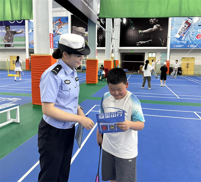 活動現(xiàn)場,宣傳人員結(jié)合學(xué)生暑期出行特點,通過多種形式開展宣傳。在羽毛球館明顯位置張貼交通安全宣傳海報,并利用學(xué)生休息間隙,化身“安全講師”,用通俗易懂的語言,結(jié)合典型事故案例,深入淺出地講解交通安全知識。從如何安全過馬路、未到12周歲禁止騎自行車上路、未到16周歲禁止騎電動車上路,到乘坐車輛時的注意事項,每一個細(xì)節(jié)都反復(fù)叮囑,讓學(xué)生們深刻認(rèn)識到遵守交通規(guī)則的重要性。