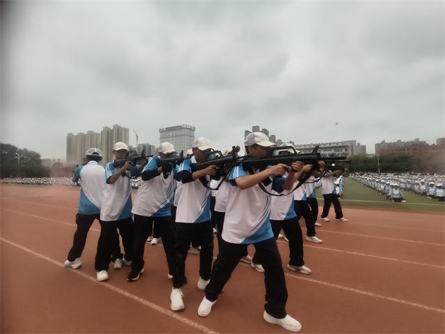 匯報(bào)表演環(huán)節(jié),各班新生方陣精神抖擻、口號(hào)嘹亮,依次入場(chǎng)展現(xiàn)蓬勃青春朝氣。全體新生先后進(jìn)行隊(duì)列隊(duì)形展示與韻律操表演,整齊劃一的動(dòng)作、挺拔昂揚(yáng)的姿態(tài),盡顯“一零后”學(xué)子的良好風(fēng)貌。令人振奮的是特色方陣表演,匕首操方陣動(dòng)作干脆利落、戰(zhàn)術(shù)方陣模擬訓(xùn)練專業(yè)投入、軍體拳方陣氣勢(shì)如虹,贏得現(xiàn)場(chǎng)陣陣掌聲,將匯報(bào)表演推向高潮。