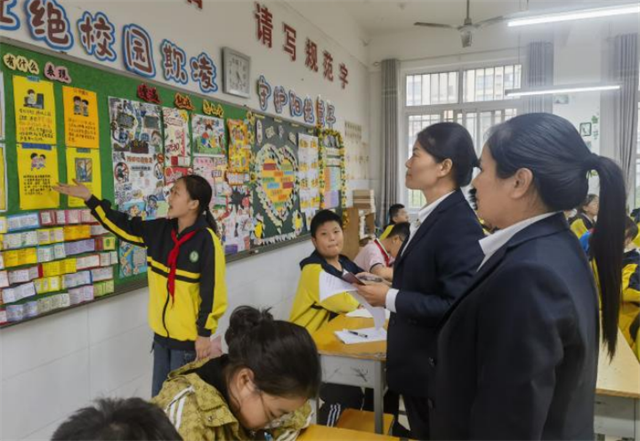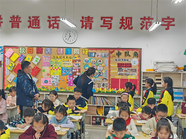 評比期間,學(xué)校領(lǐng)導(dǎo)深入各年級教室逐班查看,結(jié)合主題契合度、內(nèi)容實(shí)用性與設(shè)計創(chuàng)意,與師生交流創(chuàng)作思路并給出優(yōu)化建議,確保評比專業(yè)且具指導(dǎo)性。