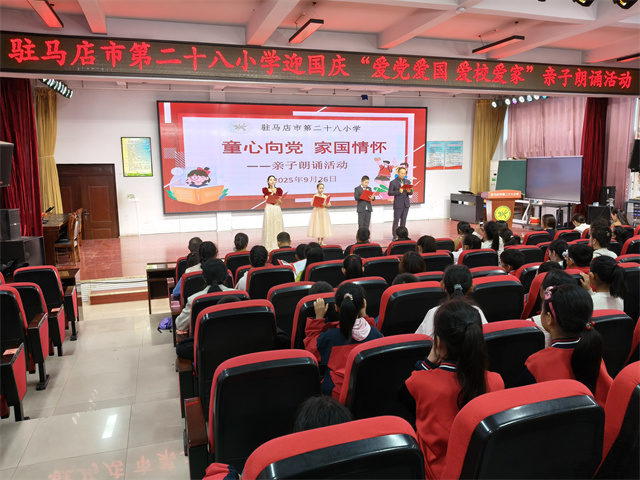 9月26日,駐馬店市第二十八小學(xué)沉浸在溫馨熱烈的氛圍中,一場(chǎng)別開生面的“愛黨愛國(guó) 愛校愛家”親子朗誦活動(dòng)在此啟幕。48組親子家庭攜手登臺(tái),以聲傳情、以誦達(dá)意,為全校師生獻(xiàn)上一場(chǎng)充滿家國(guó)情懷的視聽盛宴。