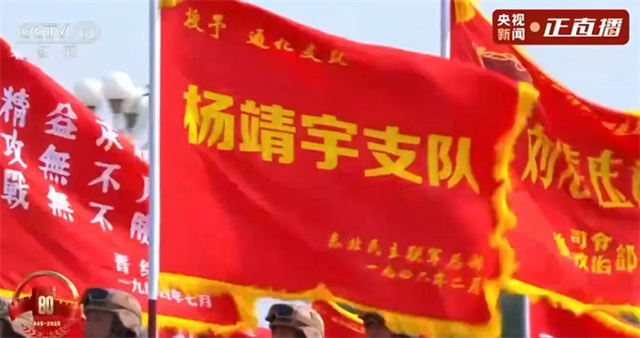2025年9月3日,在紀念中國人民抗日戰(zhàn)爭暨世界反法西斯戰(zhàn)爭勝利80周年大會閱兵儀式中,“楊靖宇支隊”的戰(zhàn)旗迎風(fēng)飄揚,接受黨和人民的檢閱。近20秒的特寫畫面,令無數(shù)中華兒女心潮澎湃。在楊靖宇將軍的家鄉(xiāng)駐馬店,人們紛紛鼓掌歡呼,表達對英雄的崇敬與對家鄉(xiāng)的熱愛。