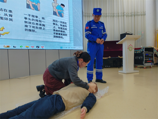 為使理論與實(shí)踐緊密結(jié)合,救援隊(duì)員們?cè)谥v解后現(xiàn)場進(jìn)行了規(guī)范的操作演示。從判斷環(huán)境安全、檢查意識(shí)到胸外按壓的正確姿勢、頻率與深度,再到人工呼吸的技巧;針對(duì)海姆立克急救法操作手法,一一進(jìn)行了細(xì)致展示。