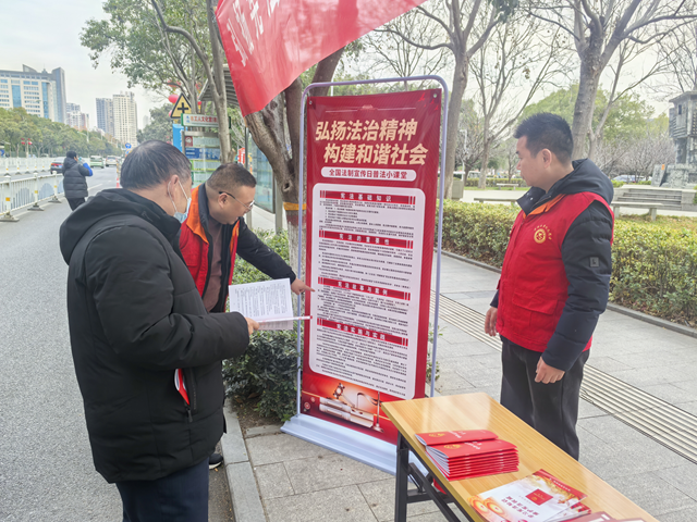 今年 12 月 4 日是第十二個(gè)國(guó)家憲法日,12月1日至7日為第八個(gè)“憲法宣傳周”。為深入學(xué)習(xí)貫徹習(xí)近平法治思想,讓憲法精神走進(jìn)群眾、融入生活,開(kāi)源辦事處以“學(xué)習(xí)宣傳貫徹習(xí)近平法治思想,推動(dòng)憲法深入人心”為主題,在天中廣場(chǎng)西門進(jìn)行憲法宣傳活動(dòng)。以接地氣的形式為轄區(qū)群眾送上“法治大餐”。