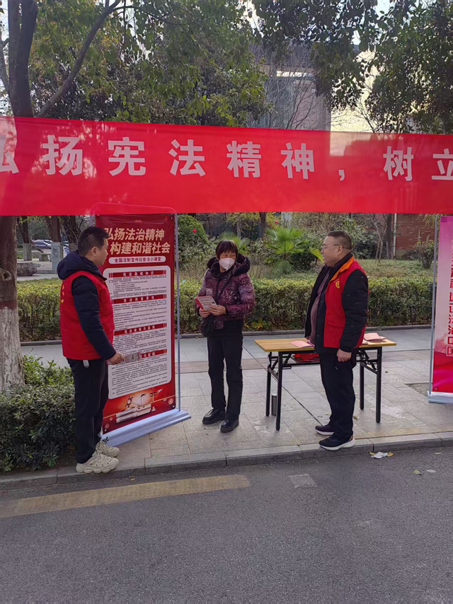 活動(dòng)現(xiàn)場(chǎng),天中廣場(chǎng)人流密集處懸掛起“弘揚(yáng)憲法精神 建設(shè)法治街道”“依憲治國(guó) 依憲執(zhí)政”等醒目橫幅,辦事處綜治辦、消防安全服務(wù)中心、司法所等部門工作人員組成宣傳隊(duì)伍,搭建起政策咨詢、知識(shí)普及、糾紛指引等多項(xiàng)服務(wù)平臺(tái)。工作人員向過(guò)往群眾發(fā)放憲法讀本、法治宣傳折頁(yè),用通俗語(yǔ)言講解憲法賦予公民的基本權(quán)利與義務(wù)、基層治理相關(guān)法律條款,重點(diǎn)解答群眾關(guān)心的婚姻家庭、勞動(dòng)維權(quán)、鄰里糾紛、老年人權(quán)益保護(hù)等熱點(diǎn)問(wèn)題。