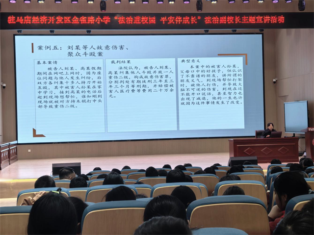 為進(jìn)一步增強(qiáng)學(xué)生法治觀念,預(yù)防未成年人違法犯罪,為青少年健康成長保駕護(hù)航,金雀路小學(xué)邀請學(xué)校法治副校長付永麗庭長入校開展“拒絕校園暴力 樹立安全意識”專題講座。此次活動(dòng)是金雀路小學(xué)深化法治校園建設(shè)的重要舉措之一。